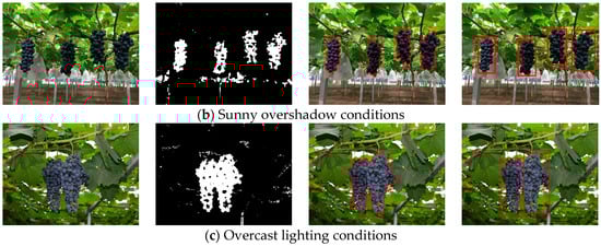 3.2. Detection of the Grape Clusters under Different Lighting Conditions