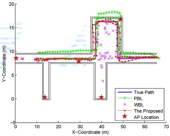 Location tracking by the proposed fusion, PBL, and WBL systems.