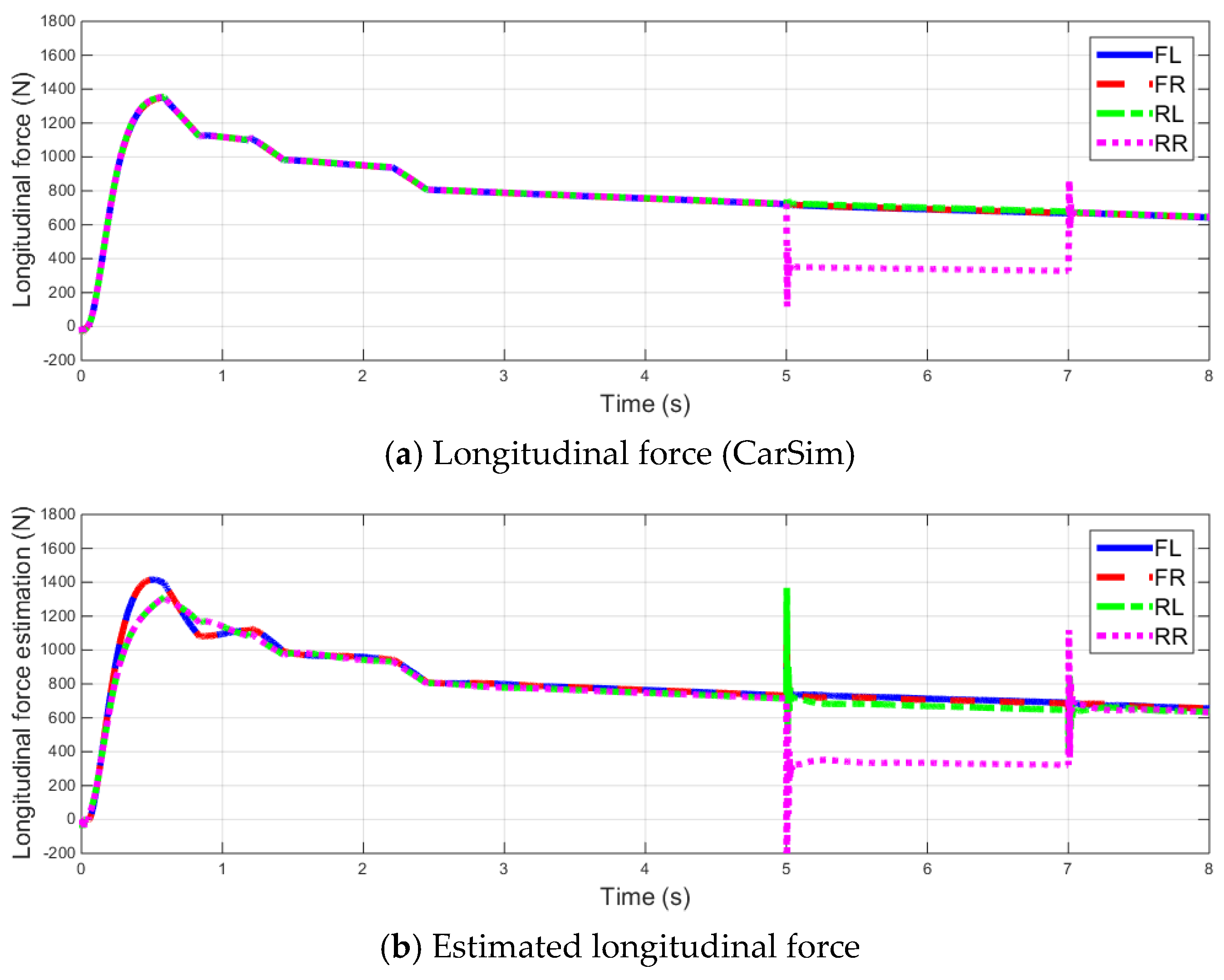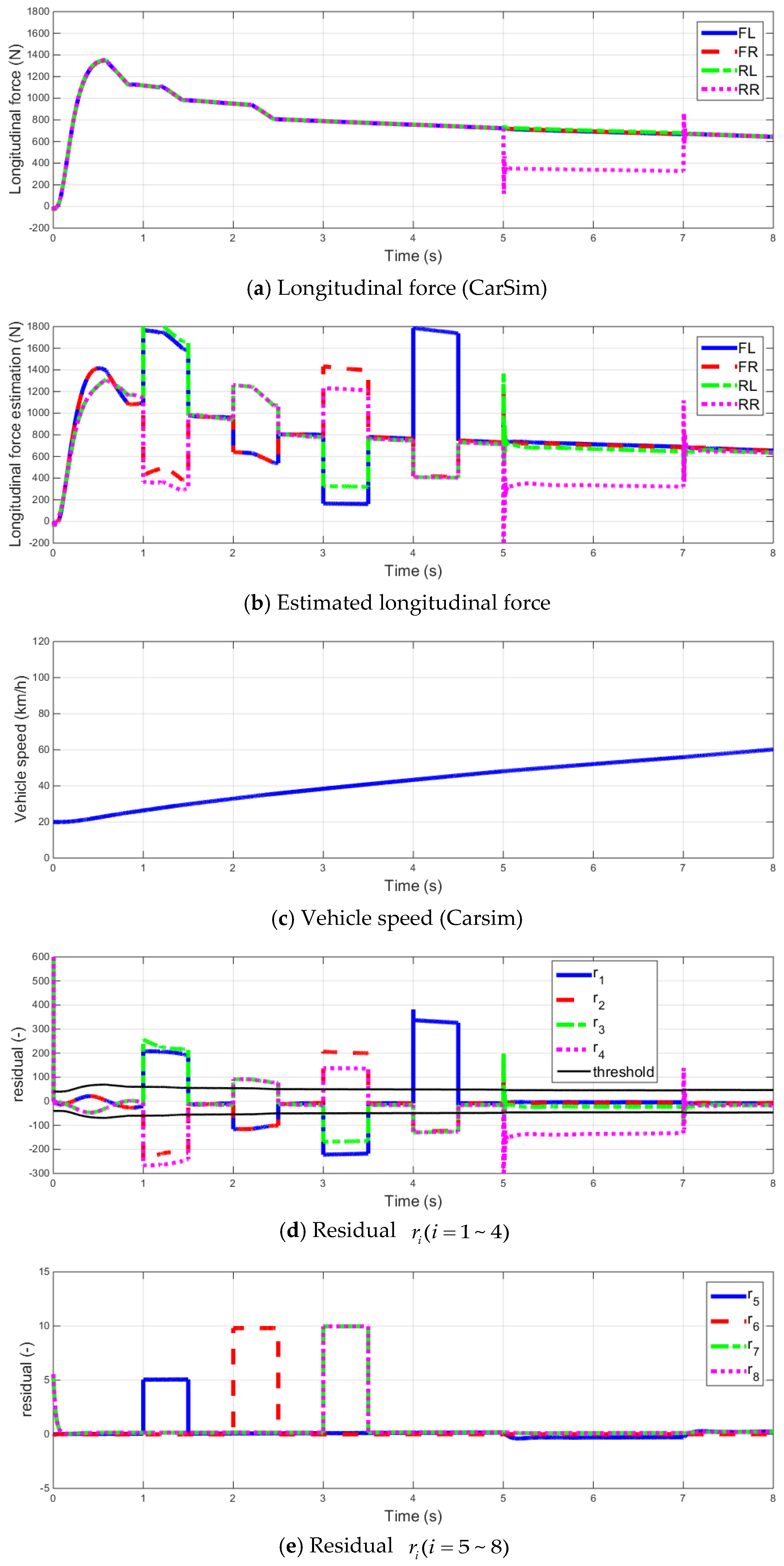 - Anwar, S.; Chen, L. An analytical redundancy-based fault detection and isolation algorithm for a road-wheel control subsystem in a steer-by-wire system. IEEE Trans. Veh. Technol. 2007, 56, 2859–2869. [Google Scholar] [CrossRef]
