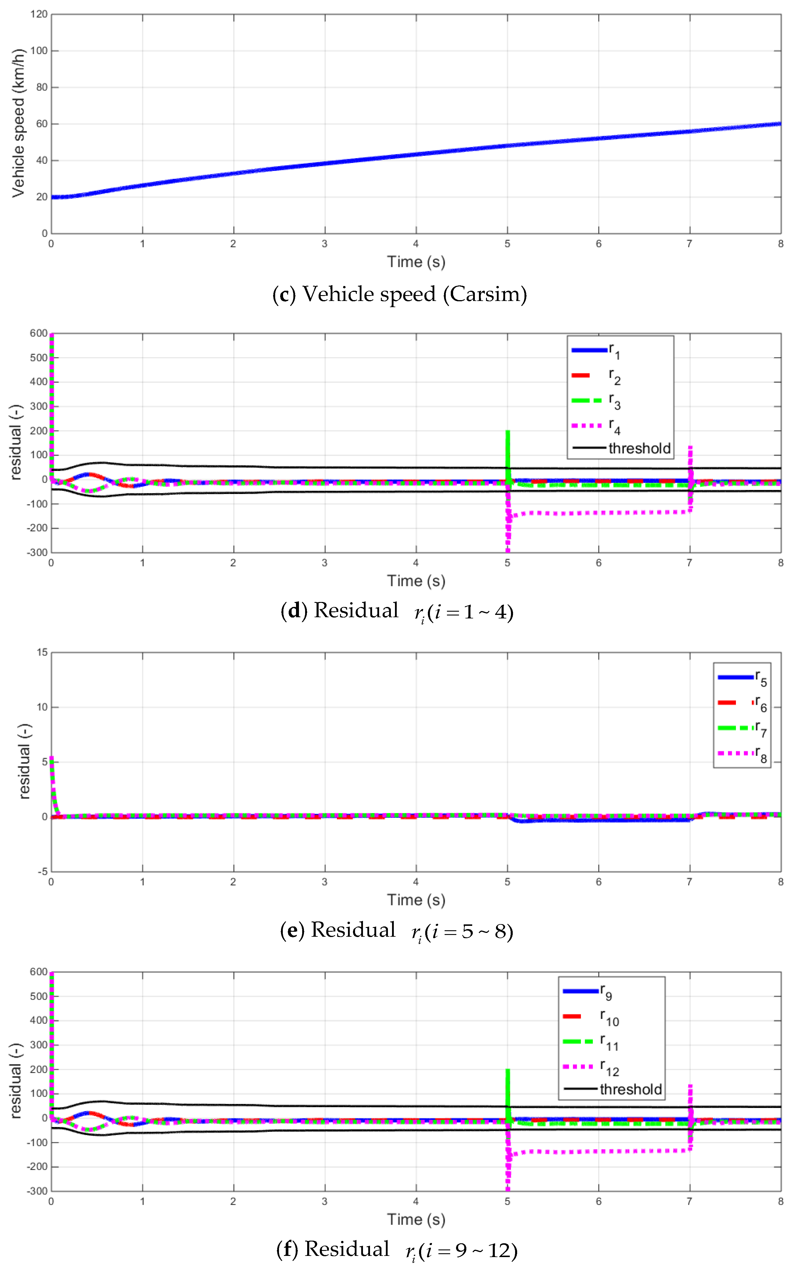 - Kim, Y.-J.; Jeon, N.; Lee, H. Model based fault detection and isolation for driving motors of a ground vehicle. Sens. Transducers 2016, 199, 67–72. [Google Scholar]