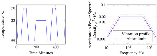 Low and High Temperature: MIL-STD 180 gives the extreme temperature in Europe as −55 and 50 °C in Ust’Shchugor, Russia and Seville, Spain respectively. Additionally, the DO-160C defines the low temperature as −55 °C and high as 70 °C which is the same or exceeds Europe’s extreme temperatures. The temperature will be reduced or increased from ambient, then held constant for three hours at the low or high temperatures receptively. Temperature ramp rate is not defined in test category D0-160C 4.5.1,3 as these are not intended to be dynamic temperature tests.