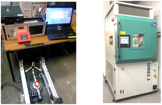 24]. The chamber temperature was measured with a Platinum resistance thermometer probe, and on each sample with K-type thermocouples. Sample temperatures were recorded using an NI cDAQ 9211 thermocouple module. Temperature and humidity output readings of the chamber were continually recorded during the tests. Sample temperatures were used as the target for temperature profiles. The chamber absolute pressure was reduced to simulate pressure levels at 50,000 ft. KF-50 pressure fittings were used for coaxial and thermocouple signal pass-through in to the pressurised test chamber.