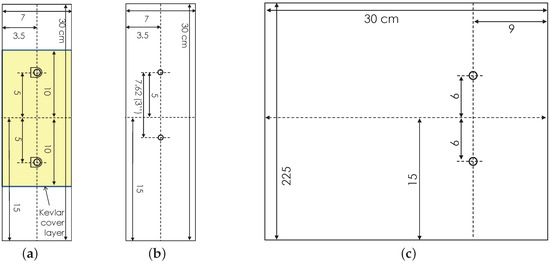 Sample 2 (Co-bonded Kevlar): This had identical transducer layout to sample 1, but with a Kevlar protective layer and 35% thinner RGW 5274 coaxial cable, see
