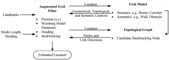 The architecture of GridiLoc is illustrated in Figure 1. The key idea of GridiLoc is the fusion of PDR and a grid model. The grid model can limit users’ movement in indoor environments, thereby improving the location estimation of PDR.