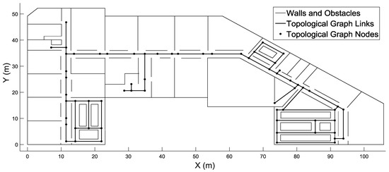 In ubiquitous and mobile computing, location is the most fundamental element [1]. Indoor environments are the main scenarios of people’s activity, and it is estimated that people spend about 87 percent of their time indoors [2]. While location-based context-aware systems, such as navigation and goods recommendation, are extending from outdoor spaces to indoor spaces [3], inferring the accurate locations of people in indoor spaces is still challenging. One of the commonly-used indoor localization methods is Pedestrian Dead Reckoning (PDR) [4], which has become a mainstream method due to the advent of sensor-rich smartphones. However, PDR often suffers from the accumulative error problem because of the drift in gyroscope readings and the influence of ferromagnetic materials on magnetometer readings, which may cause a large error in the heading estimation. A common solution to this issue is to combine map filtering with PDR [5,6,7]. Map filtering uses Bayesian techniques to reduce the uncertainty of indoor location estimations that violate the spatial constraints (e.g., walking through walls or obstacles), thereby enhancing the localization accuracy. However, map filtering takes into account a limited number of spatial contexts, and the definition of violating the spatial constraints is also imprecise. For instance, in the map filtering approach, wall-crossing estimations are identified if the line segment between two successive estimations intersects with a wall, which ignores the case of wall bypassing. Furthermore, it has low efficiency in performing frequent and time-consuming spatial computations by using a simple map, such as calculating the shortest path distance. The computational results can be used to aid indoor localization and are requested multiple times in one estimation. Furthermore, map filtering might encounter tracking failure issues: the accumulative error still exists in map filtering-aided PDR, especially in extremely complex indoor spaces (e.g., those spaces with many close turning corners or neighboring passages) where all of the particles may enter erroneous passages.