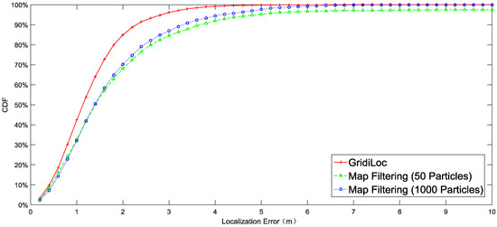 Four error measurement methods are used to evaluate the localization accuracy of GridiLoc and map filtering: standard error, mean error, median error and 67% Circular Error Probable (CEP), as shown in Table 1.