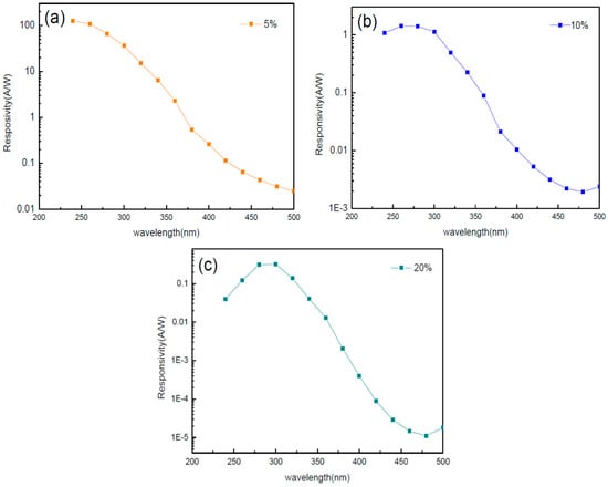 Responsivity of the devices with (a) 5%; (b) 10%; and (c) 20%.