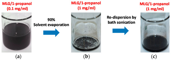 MLG suspension after: (a) ultrasonication, (b) solvent evaporation and (c) re-dispersion step.