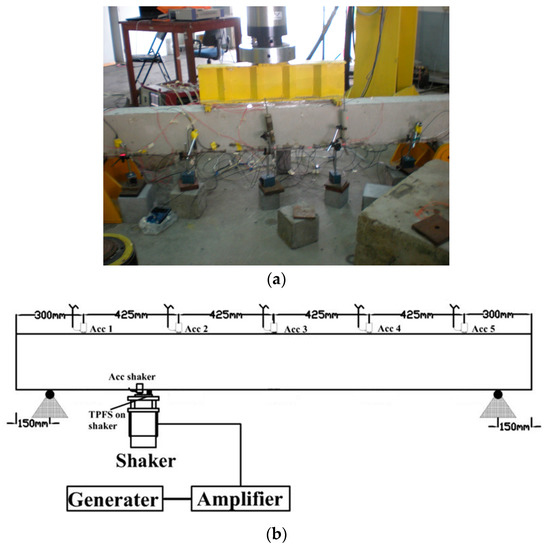 Experimental setup of TPFSs systems for the RC beam vibration test.