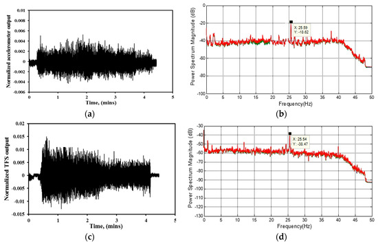 (a) Responses of TPFS; and (b) accelerometer for vibration frequency of 30Hz.