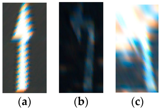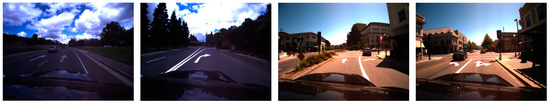 In Figure 13, we show the examples of correct recognition cases, which show that our method can correctly recognize the arrow markings even in the case of being severely damaged. In addition, the examples of incorrect recognition cases are shown in Figure 14. As shown in Figure 14, most of the incorrect recognition is due to the low image quality by image blurring, severe shadow and bright sunlight.