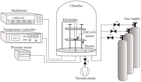 Experimental setup for the gas sensitivity measurements of ZnCo2O4 nanoparticles.