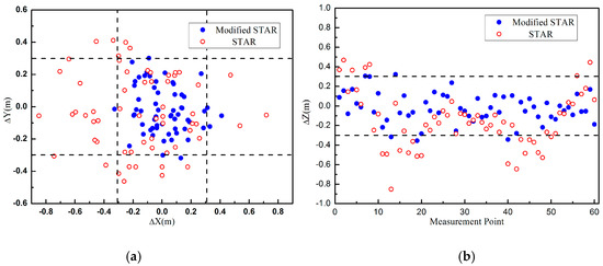 Figure 9. As predicted by the simulations, the accuracy of the proposed method was much higher than the traditional STAR method. It is observed that the localization errors of the traditional STAR method were at the largest when