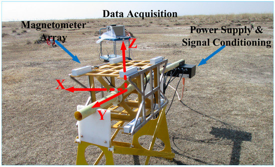 To evaluate the proposed method, a field experiment was carried out in Hebei province, China. The experiment system consisted of a magnetometer array, a module of power supply and signal conditioning, and a module of data acquisition, as shown in