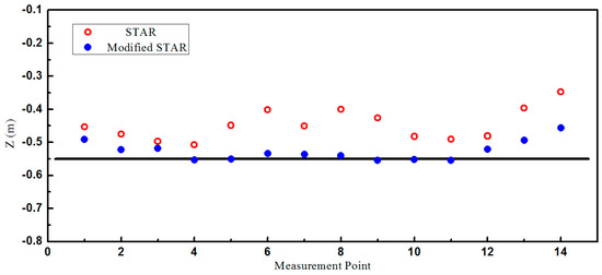 Figure 4. Similar to the first experiment, the accuracy of the proposed method was higher than the traditional STAR method. The errors of the proposed method were mainly caused by the residual errors and the errors of the STAR method were caused by both the residual errors and the asphericity errors.