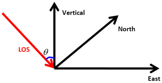 Because of the right-side looking geometry, the InSAR estimate subsidence is sensitive only towards its light of sight (LOS) direction. However, the leveling task performed in the ground survey was in the vertical direction. The difference in direction between InSAR and leveling is shown in Figure 7.