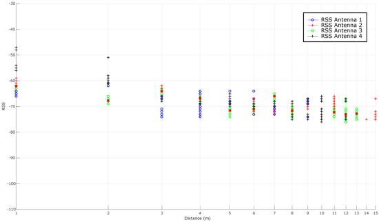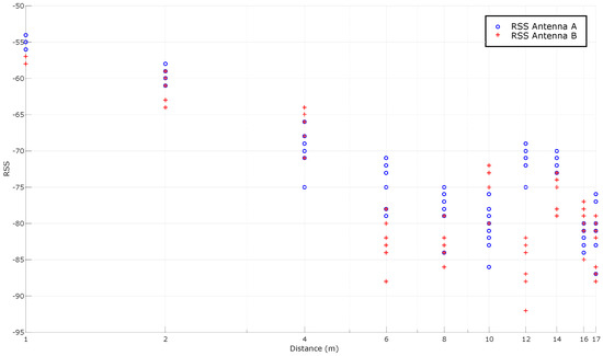 - Bahl, P.; Padmanabhan, V.N. RADAR: An in-building RF-based user location and tracking system. In Proceedings of the Nineteenth Annual Joint Conference of the IEEE Computer and Communications Societies (INFOCOM 2000), Piscataway, NJ, USA, 26–30 March 2000; Volume 2, pp. 775–784.