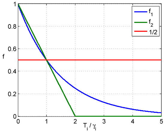 There are many forms of f to meet Equation (8). The p-value of hypothesis testing would have more proper to reflect the reliability of the results than the test statistic and threshold. However, the calculation of the tail probability for each obtained statistics in the method of the p-value is too complicated. Herein, two definitions of f are proposed for simplicity in the application. In what follows, and are assumed as non-negative, and this is possible in a proper way. One definition of f can be given as: