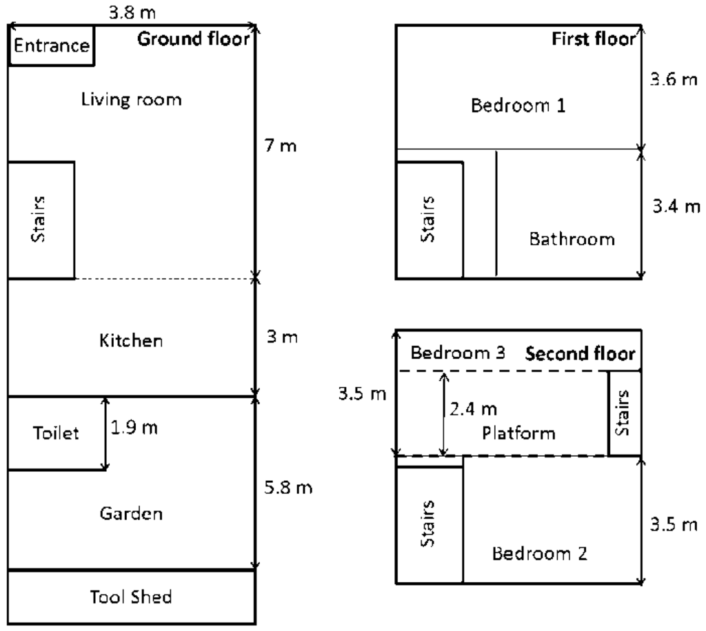 Floor plan of the residential building in Ghent, Belgium, where the RF exposure measurements took place.