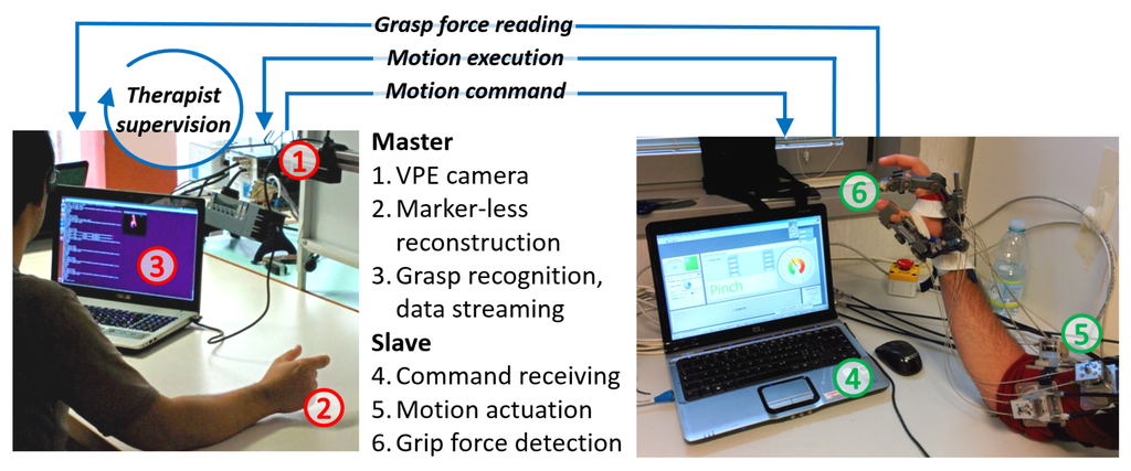 - Cortese, M.; Cempini, M.; de Almeida Ribeiro, P.R.; Soekadar, S.R.; Carrozza, M.C.; Vitiello, N. A Mechatronic System for Robot-Mediated Hand Telerehabilitation. IEEE/ASME Trans. Mechatron. 2014, 20, 1753–1764. [Google Scholar] [CrossRef]