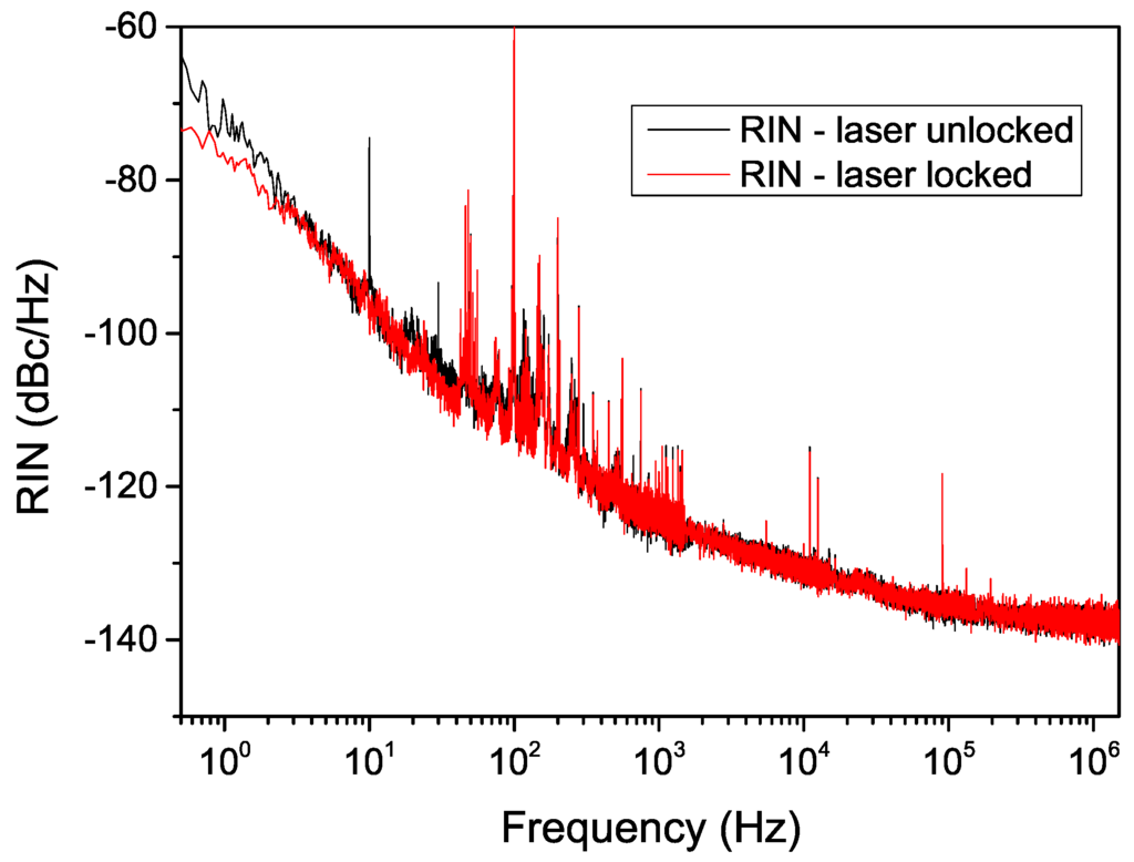 RIN spectral distribution in locked and unlocked conditions.