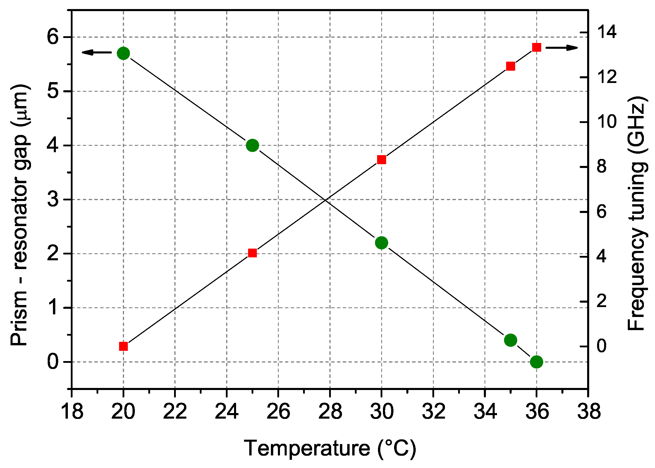 - Savchenkov, A.A.; Matsko, A.B.; Ilchenko, V.S.; Yu, N.; Maleki, L. Whispering-gallery-mode resonators as frequency references. II. Stabilization. J. Opt. Soc. Am. B 2007, 24, 2988–2997. [Google Scholar] [CrossRef]