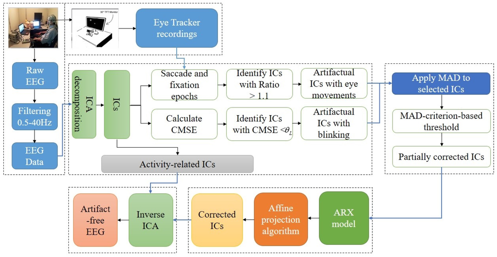 - Zeng, H.; Song, A.; Yan, R.; Qin, H. EOG artifact correction from EEG recording using stationary subspace analysis and empirical mode decomposition. Sensors 2013, 13, 14839–14859. [Google Scholar] [CrossRef] [PubMed]