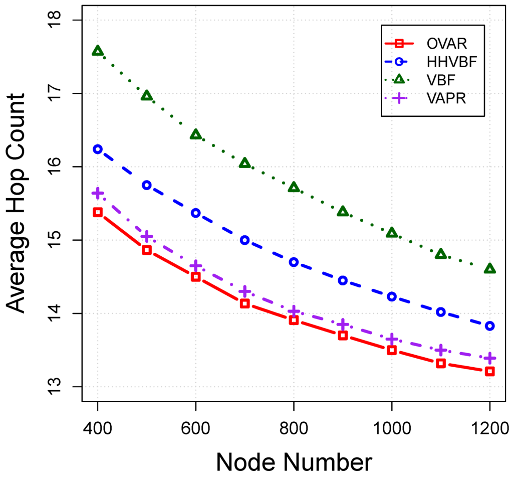 Figure 4) with a single-direction progressive routing protocol when the distance between the source and sink is