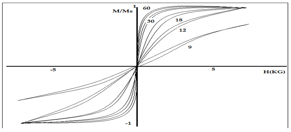 Hysteresis loops for several Fe/Cr for different thickness of Cr and with the presence of magnetic field by Baibich et al. [13].