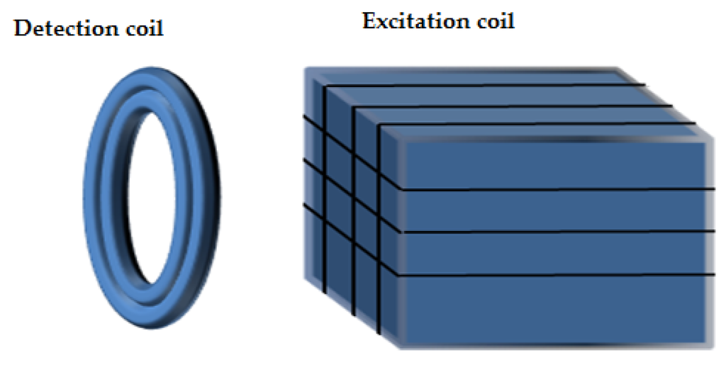 As shown in Figure 9, there are only one excitation coil and four different detection coils. This new design highly simplifies the control and DAQ circuits and also reduces the time slots by half.