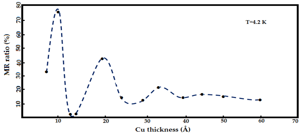 - George, J.; Pereira, L.; Barthélémy, A.; Petroff, F.; Steren, L.; Duvail, J.; Fert, A.; Loloee, R.; Holody, P.; Schroeder, P. Inverse spin-valve-type magnetoresistance in spin engineered multilayered structures. Phys. Rev. Lett. 1994, 72, 408–411. [Google Scholar] [CrossRef] [PubMed]