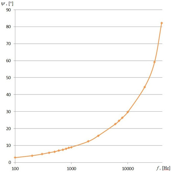 The resonant values of the angle ψ are e.g., 9° when f = 1000 Hz, 12°25’ when f = 2000 Hz, 82°10’ when f = 40,000 Hz (Figure 3). In the latter case, the device error may exceed 2° s−1.