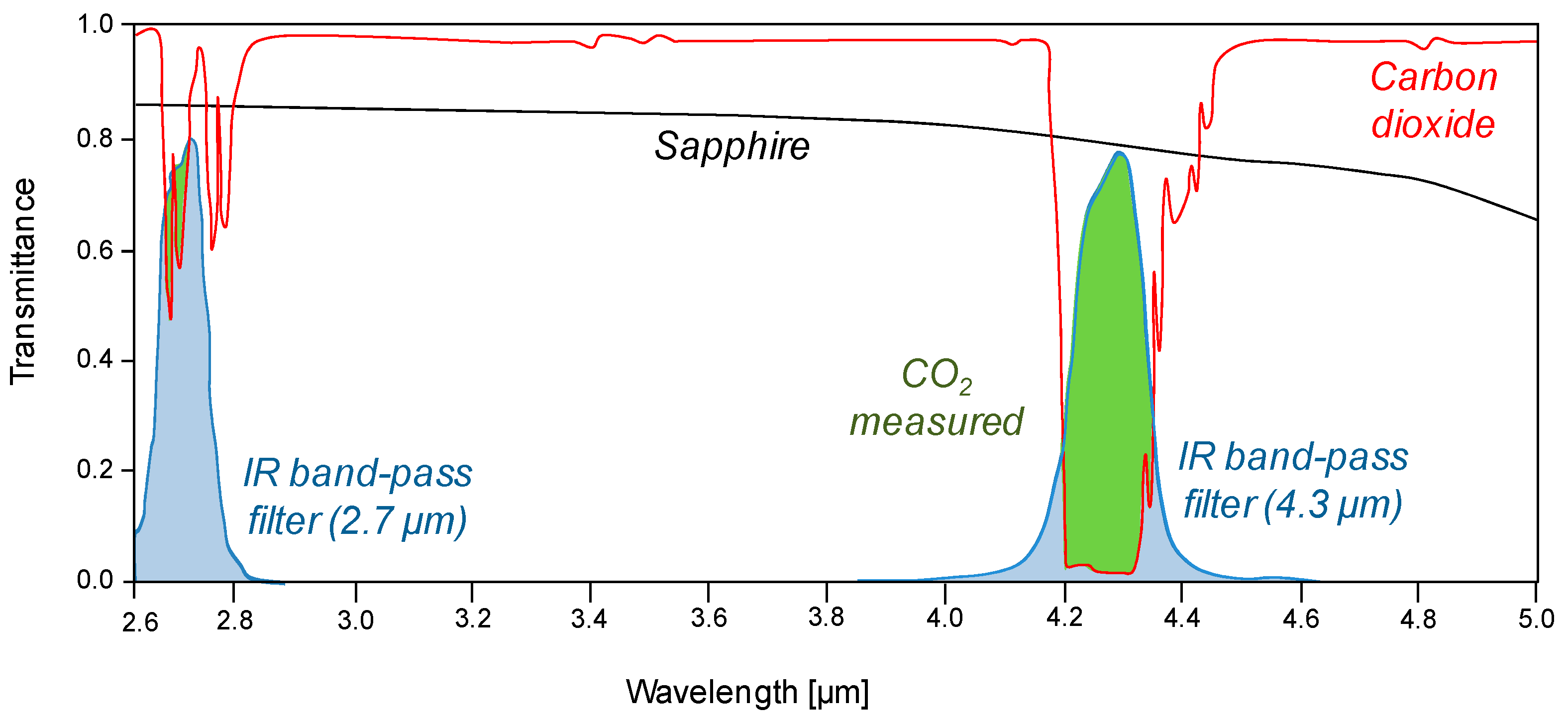 Schematic representation of the IR absorption when using CO2 as tracer gas in a sapphire column.