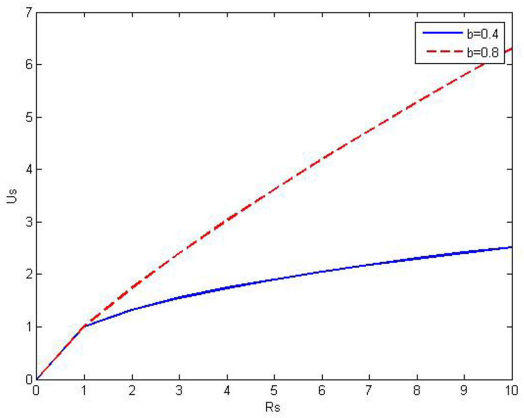 where b is the satisfactory factor of the SU, Figure 4 illustrates the satisfactory function of the secondary user versus its capacity. It is shown that the increment of user’s satisfactory is decreasing as the capacity is increasing, which also follows the law of the diminishing marginal benefit in economics.