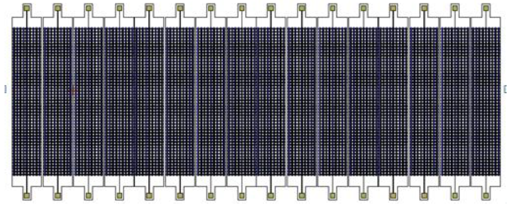 The emission performance of ultrasonic transducers is closely linked with its structural parameters. From previous studies [21], several directivity functions were deduced by Huygens’ Principle to guide the array structure design, and the resultant 1 × 16 CMUT structure is shown in Figure 2.