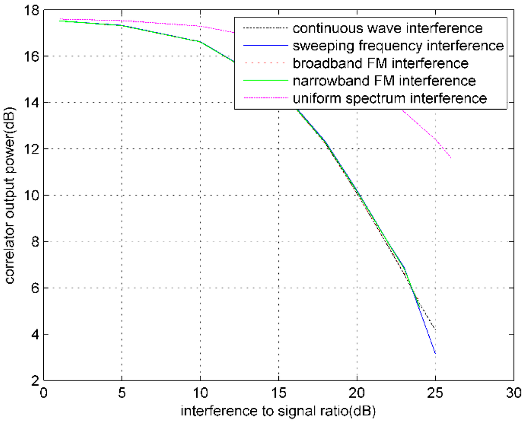 When there are interferences through receivers, distortion, delay or peak reduction will arise in the receiver correlation peak curve, which directly results in variation. Therefore, the quality of the received signals can be judged by and the preliminary analysis can determine whether there are interferences.
