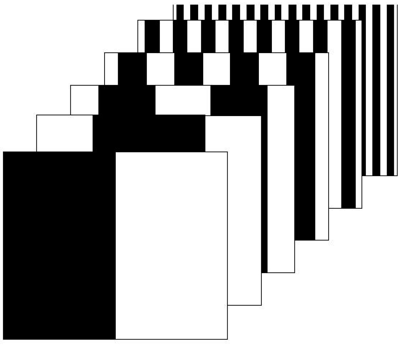 Structured light equipment is composed of a light source (the light projector) and one or two information receptors (the cameras). Among all the structured light techniques, there are two main groups [53]: time-multiplexing techniques, which are based on projecting a sequence of binary or grey-scaled patterns, and one-shot techniques, which project a unique pattern. The advantage of time-multiplexing techniques is that, as the number of patterns is not restricted, a large resolution, i.e., number of correspondences, can be achieved. However, their main constraint is that the object, the projector and the camera must all remain static during the projection of the patterns. In one-shot techniques a moving camera or projector can be considered. In order to concentrate the codification scheme in a unique pattern, each encoded point or line is uniquely identified by a local neighbourhood around it [54].