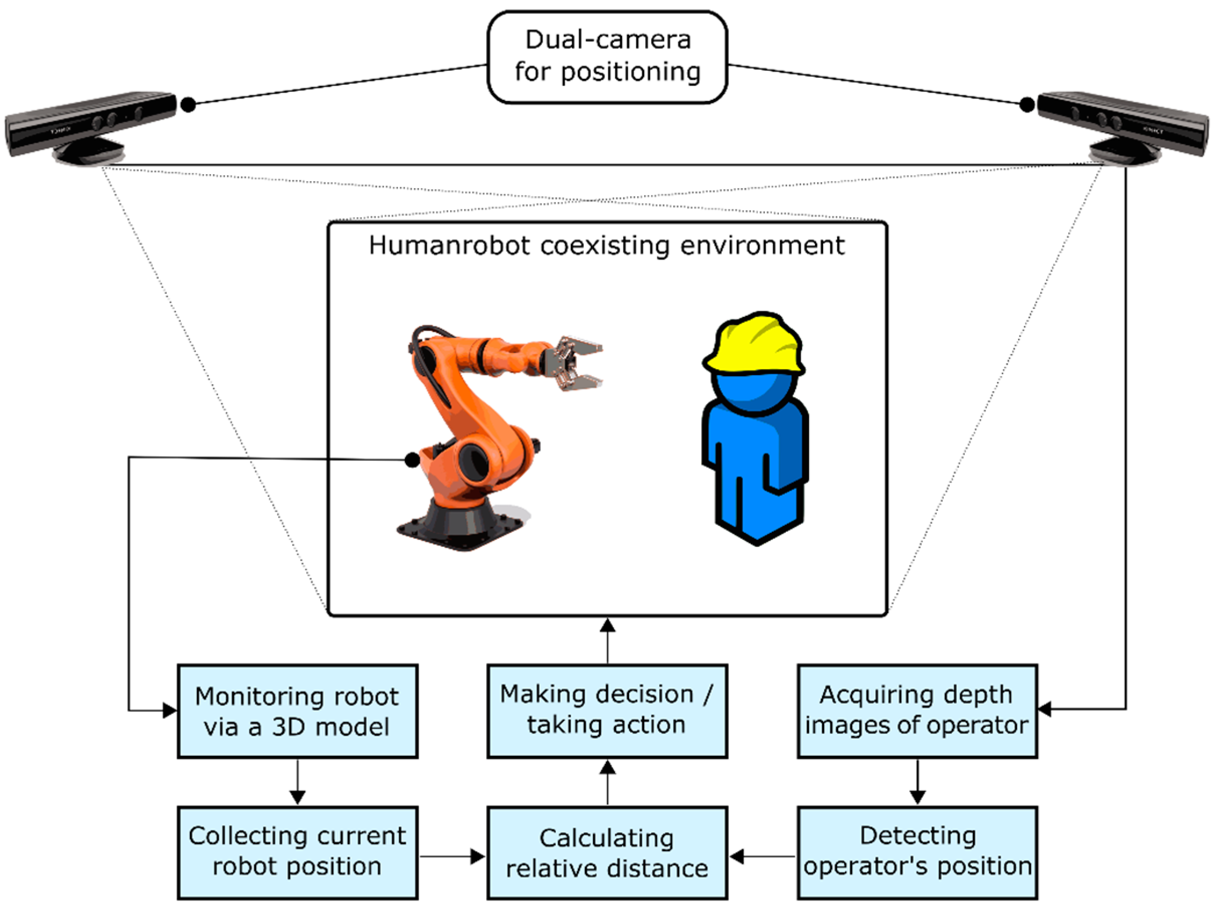 - Wang, L.; Schmidt, B.; Nee, A.Y.C. Vision-guided active collision avoidance for human-robot collaborations. Manuf. Lett. 2013, 1, 5–8. [Google Scholar] [CrossRef]