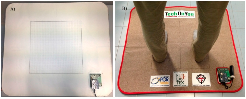 This work was produced within the scope of the project “Tappeto sensorizzato per il monitoraggio e tele-assistenza della condizione fisica di persone anziane” developed at the company TechOnYou s.r.l. and funded by a grant from “P.O.R. SARDEGNA F.S.E. 2007–2013—Obiettivo competitività regionale e occupazione, Asse IV Capitale umano, Linee di Attività l.1.1. e l.3.1”. The authors would like to thank Bruno Leban for the support and advices during the developing of the experimental setup and during the experimental validation with the commercial pressure platform.