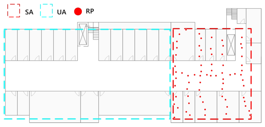 We first built a training database covering part of the target area. The database contains 71 RPs. We will test the new algorithm in the surveyed area and in different unsurveyed areas. Figure 13 is the distribution of the initial data.