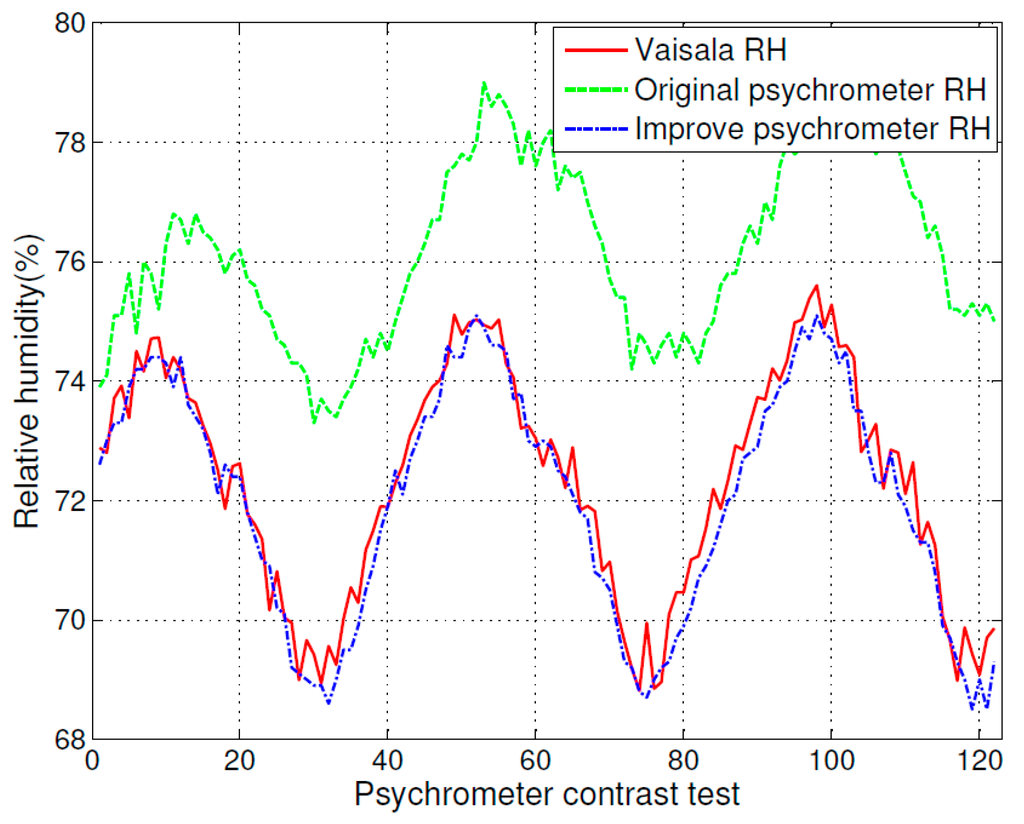 Comparison of measurement accuracy between the improved psychrometer and relative humidity instrument (HMP75).