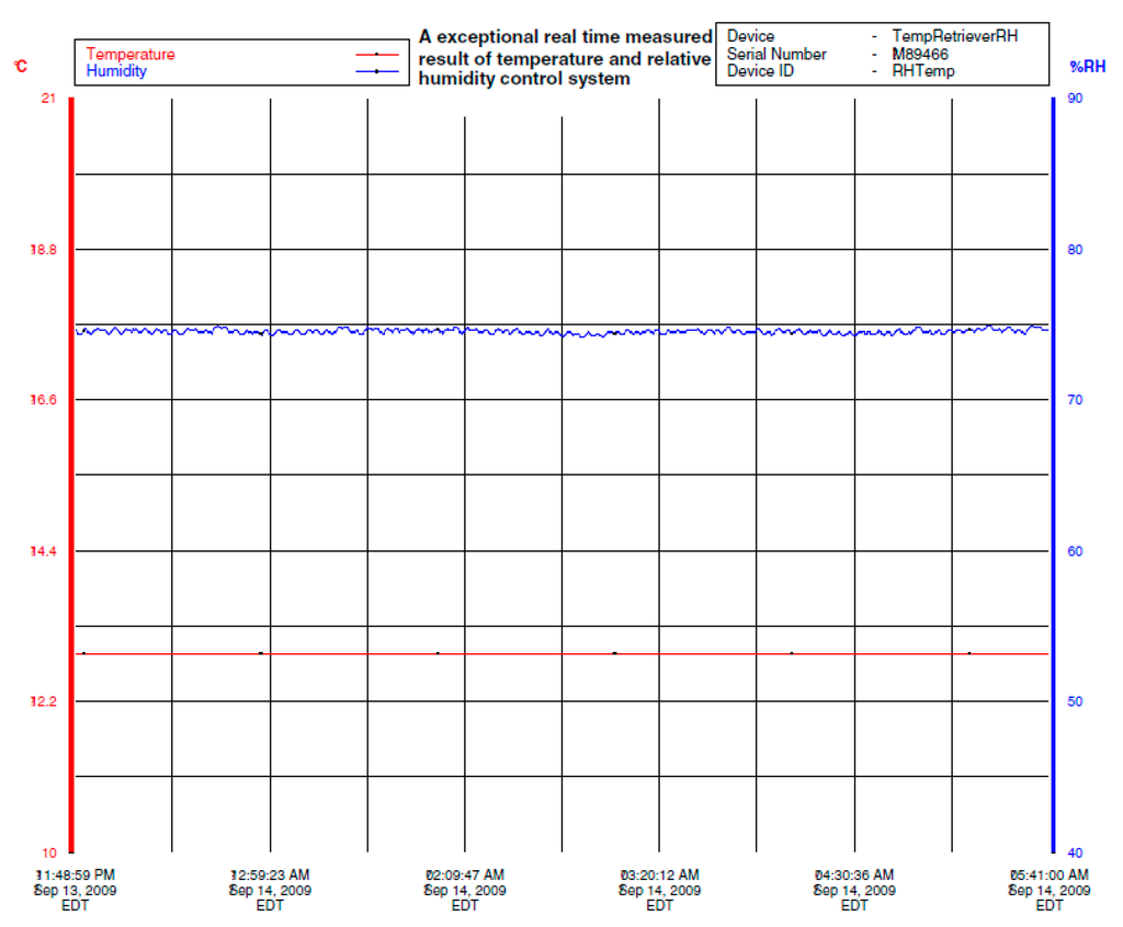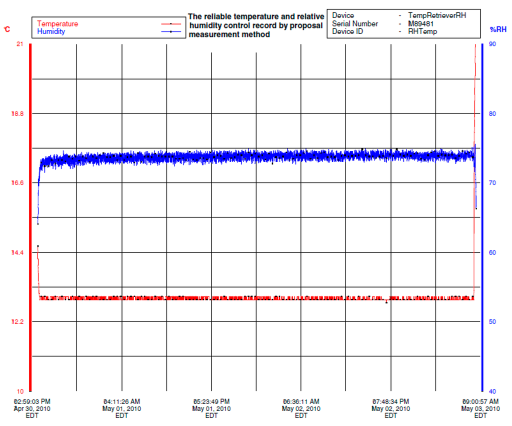 The temperature and relative humidity under closed loop control based on meticulous setup.