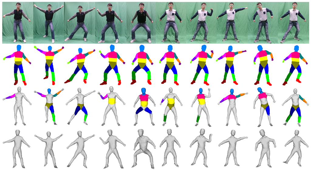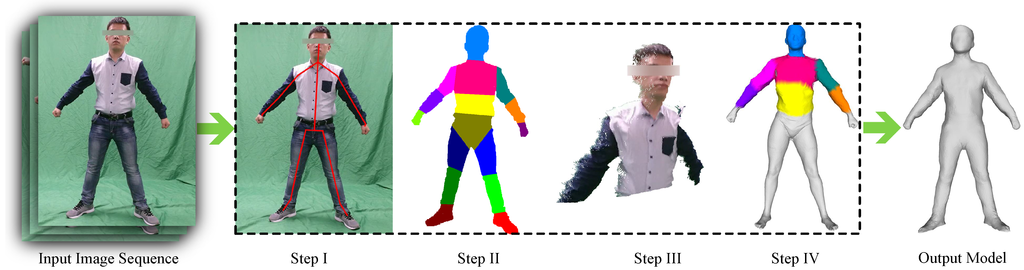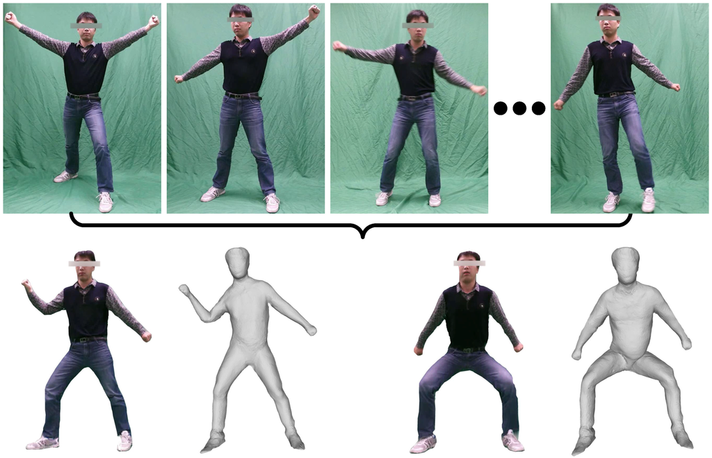 Our system’s pipeline begins by taking an image sequence as input, and its output is the reconstructed human model.