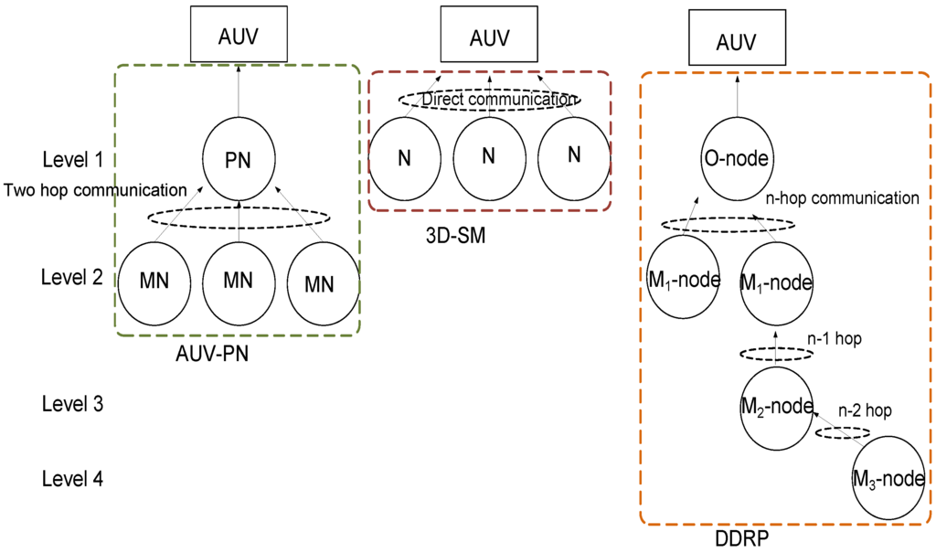 Overview of existing protocols. AURP, AUV-aided underwater routing protocol; PN, path node; MN, member node; NLT, network lifetime; DFR, directional flooding-based routing.