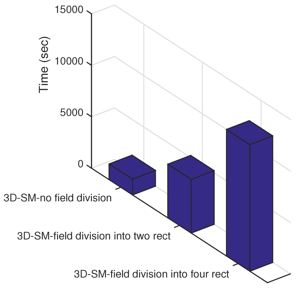 Let us consider three different cases: (i) the network field is not logically divided; (ii) the network field is divided into two logical sub-regions; and (iii) the network field is logically divided into four sub-regions. The trajectories of the MS(s)/CN(s) are kept the same for all of the three cases. As the next step, we test the three mentioned cases via simulations; results are shown in Figure 2. From this figure, it is clear that the network lifetime increases as the number of logically-divided sub-areas is increased. However, the installation cost of the MS/CN prohibits further division (one AUV costs approximately 50,000 USD []). From our discussion till now, the solution seems to be static. Rather than static, our solution is adaptive, i.e., we use the following formula for finding the number of region “”.
