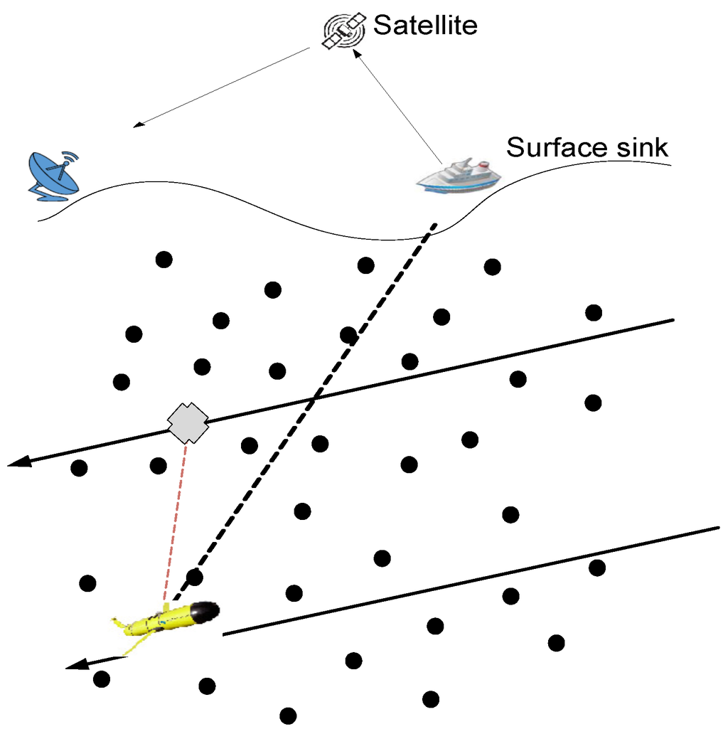 - Bzoor, M.A.; Zhu, Y.; Liu, J.; Ammar, R.; Cui, J.H.; Rajasekaran, S. An adaptive surface sink redeployment strategy for Underwater Sensor Networks. In Proceedings of the 2013 IEEE Symposium on Computers and Communications (ISCC), Split, Croatia, 7–10 July 2013; pp. 801–806.