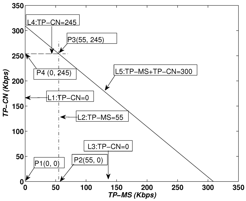 The validity of the feasible region is proven. The total throughput during a trip of the MS and CN lies within the boundaries of the illustrated region.