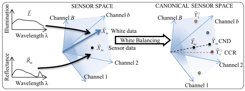 where and the space of is called the canonical space. We note that this operation of compensating the data using the white data is called white balancing in the field of image processing [19].