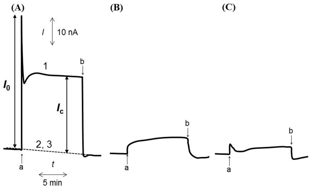 - Yasukawa, T.; Uchida, I.; Matsue, T. Permeation of Redox Species Through a Cell Membrane of a Single, Living Algal Protoplast Studied by Microamperometry. Biochim. Biophys. Acta 1998, 1369, 152–158. [Google Scholar] [CrossRef]