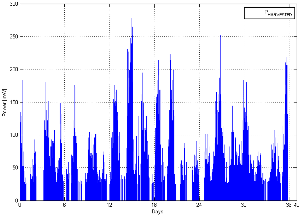 Harvested power from the wind during the 35 days of experiment—deployment (I).
